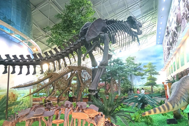 嘉荫恐龙博物馆展出的骨架(央广网记者陈显春 摄)