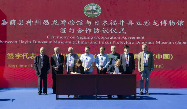 会上,嘉荫县神州恐龙博物馆与日本最大的恐龙博物馆——福井县立恐龙博物馆签署合作协议,此举将进一步扩大嘉荫在恐龙博物馆建设及地学旅游等领域的国际影响及未来更广泛的国际合作前景。