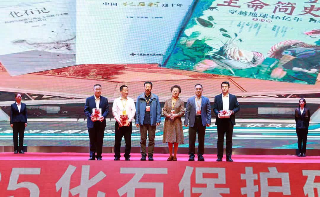 中国古生物化石保护基金会副理事长黄新燕,专家委员会副主任王永栋、姬书安,向朝阳市古生物化石管理服务中心捐赠科普丛书。朝阳市化石保护志愿者李晏军、张云鹏、李刚向中国古生物化石保护基金会捐赠了化石标本。