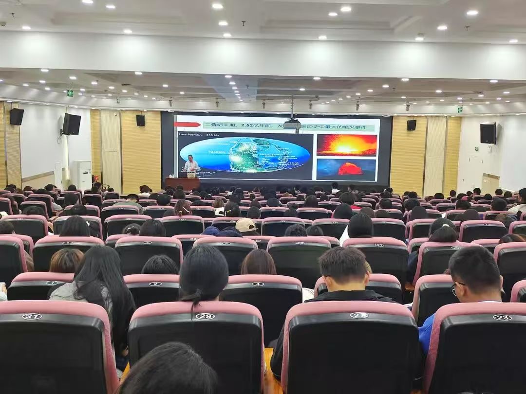 中国古生物化石保护基金会专家委员会委员、北京大学地球与空间科学学院教授江大勇为朝阳师范学院师生进行科普讲座