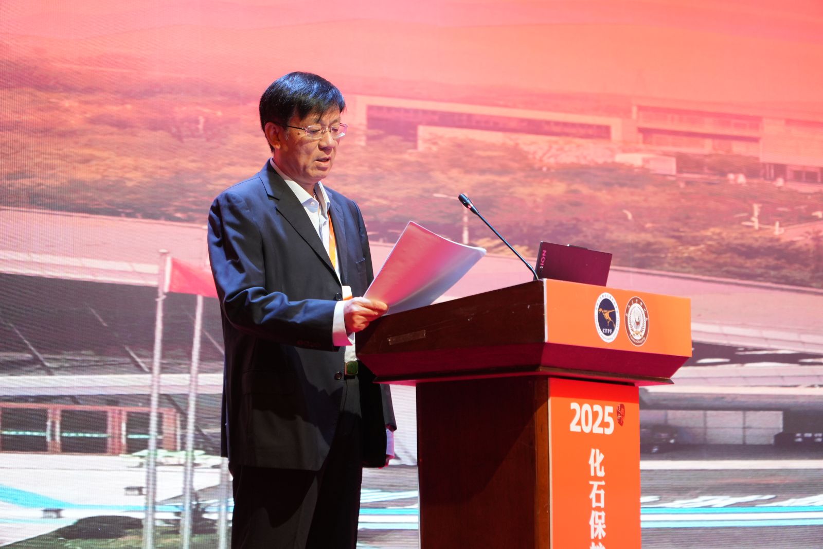 中国古生物化石保护基金会理事长贾跃明在开幕式上讲话